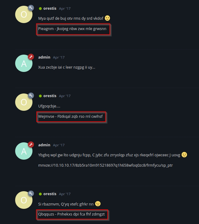 In the "secret forum", we encounter an "encrypted" thread and we have to figure out a way to decrypt the ciphertexts. Once all the messages are decrypted, we get a download link for an encrypted RSA key. We need crack the password out of it using John. At this stage, we can SSH in as Orestis and get the user flag.
