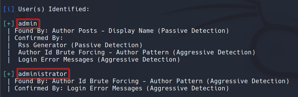 . WPScan finds two usernames admin
