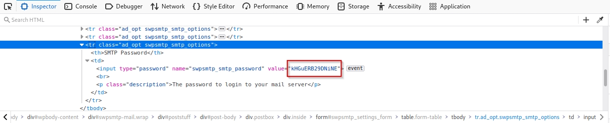This "hidden" SMTP password can be obtained through developer tools. The password is kHGuERB29DNiNE